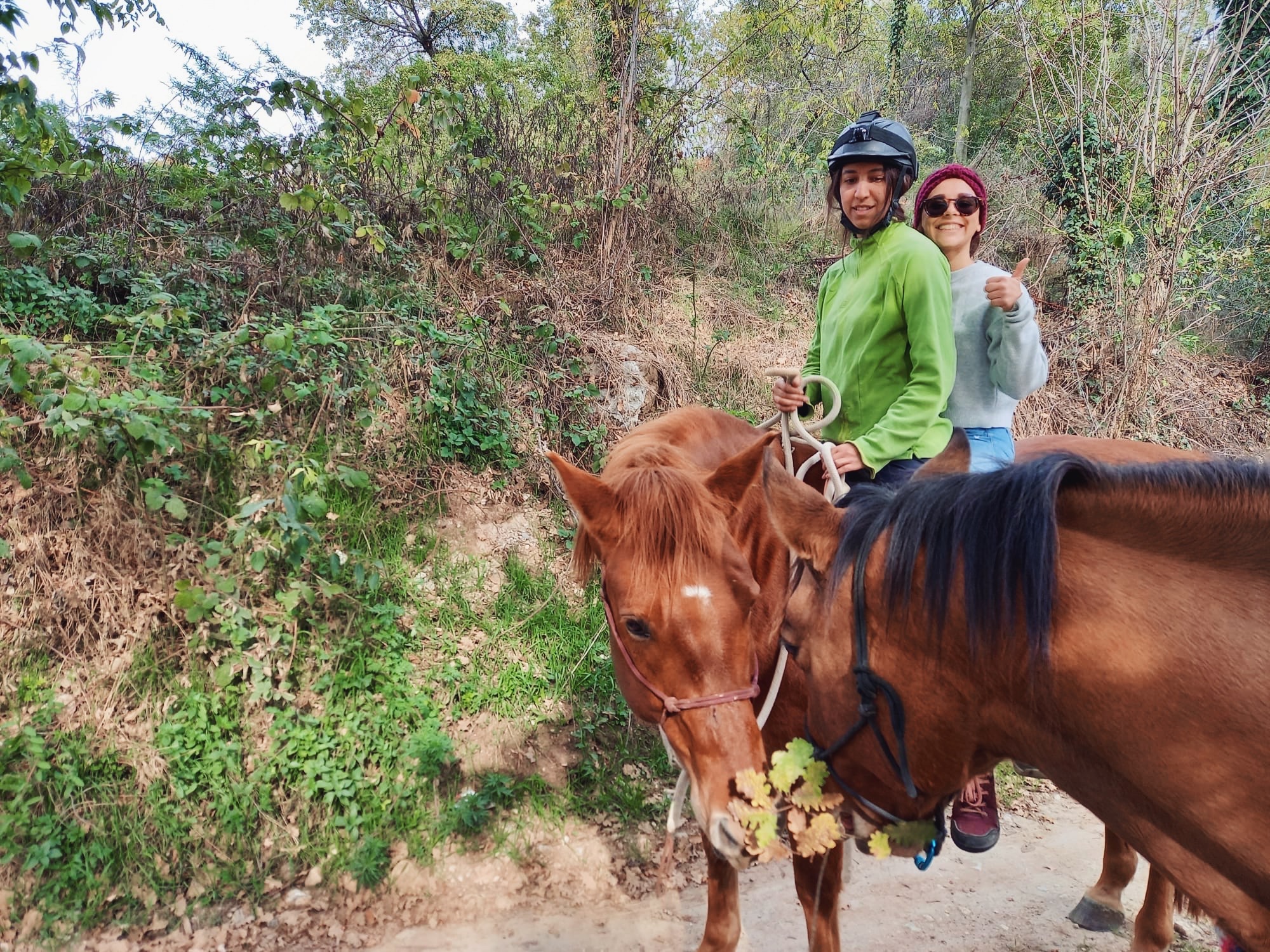 Il contesto in cui ci troviamo offre la possibilità di fare moltissime passeggiate o escursioni di diverse ore/giorni, provando esperienze diverse e stimolanti: intorno al centro ci sono molte mulattiere e boschi, uliveti e prati da attraversare, lontani dal caos della città. Si può arrivare al lago, in una spiaggia isolata raggiungibile attraversando un boschetto, dove in alcuni momenti dell’anno è possibile fare il bagno con i cavalli. Si può andare anche in paese, con cavalli preparati e competenti, fermarsi a prendere un gelato a cavallo, insegnare ai nostri amici ad avere a che fare con la civiltà con gradualità ed in tutta sicurezza. Se avete un cavallo, avete la possibilità di venire in zona e volete organizzare uscite in compagnia, contattatemi pure!